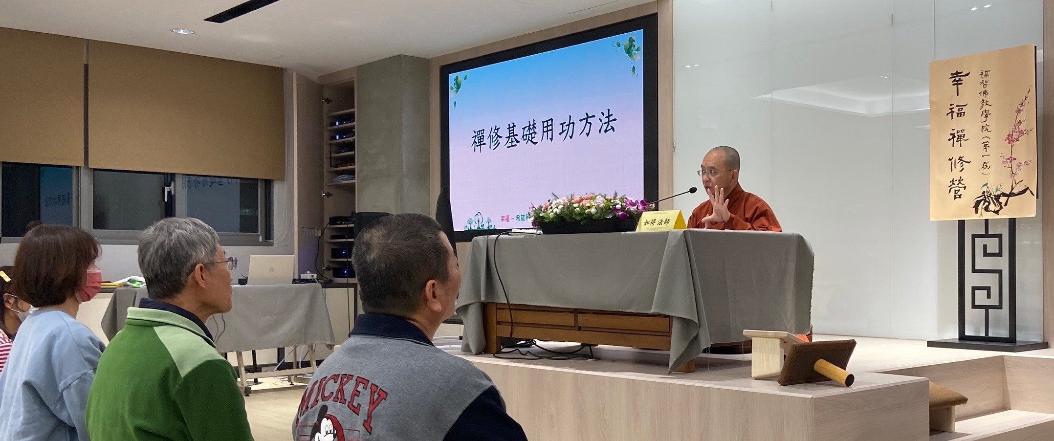 本次幸福禪修營為基礎課程,由佛教學院校長如得法師親自教授,課程特色具道次第禪修傳承,是止觀初探的實修。2天密集的課程,輕薄短小,專注體驗效能高。在優美清淨的綠建築宗德樓3樓舉辦,學員可以大口深呼吸。享用在地健康食材烹煮的低碳蔬食,更為健康及地球永續加分。