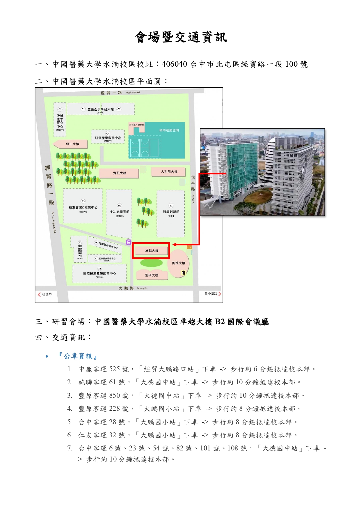 (二)地點:本校水湳校區卓越大樓B2國際會議廳